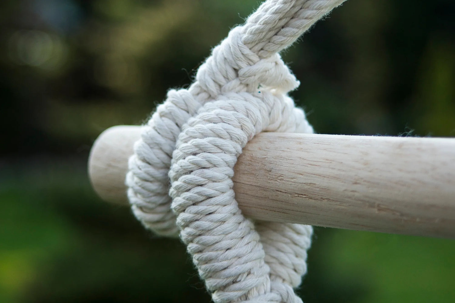 Ce fauteuil suspendu s’installe facilement grâce à sa barre en bois robuste et ses cordons ultra résistants.