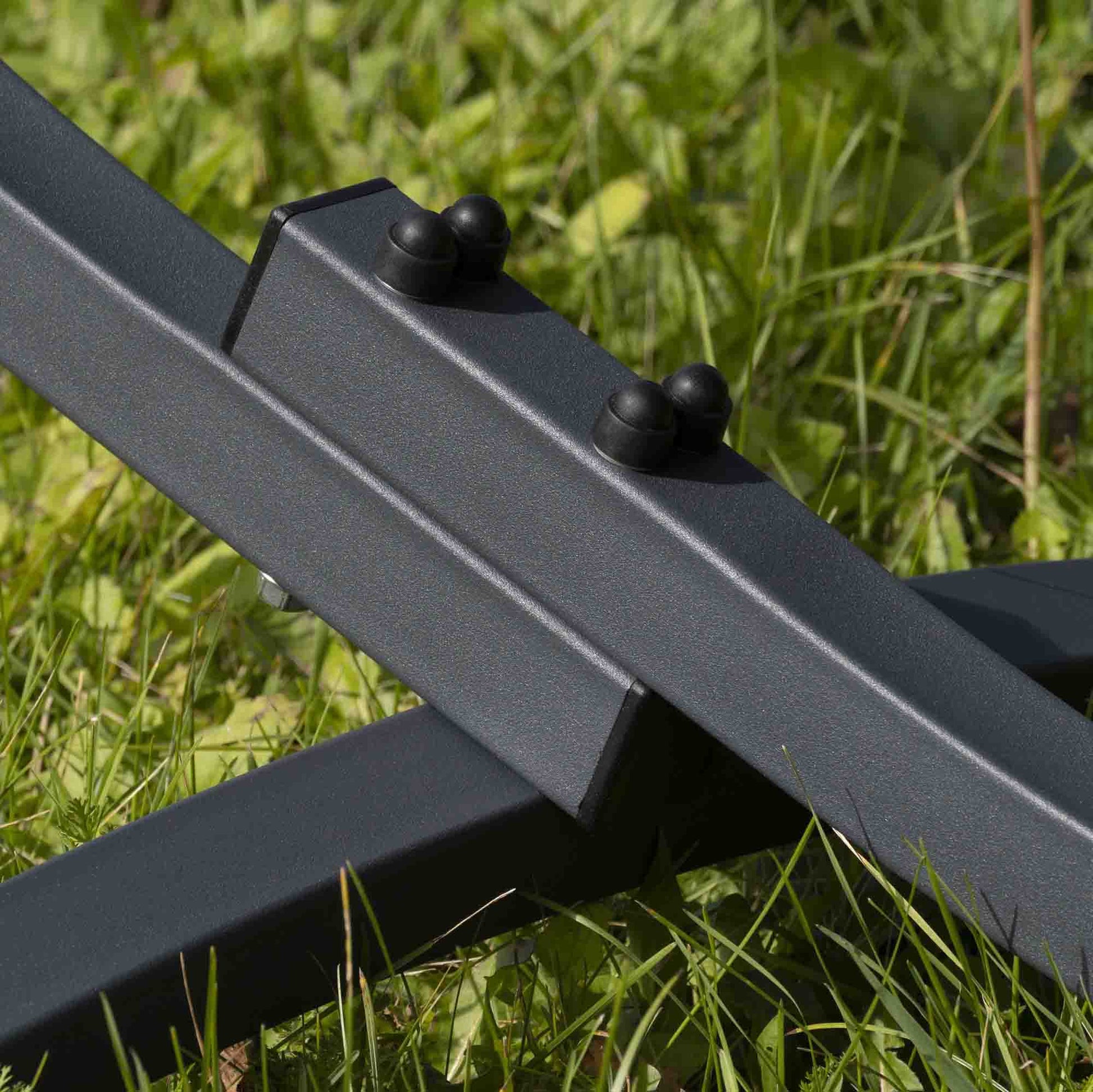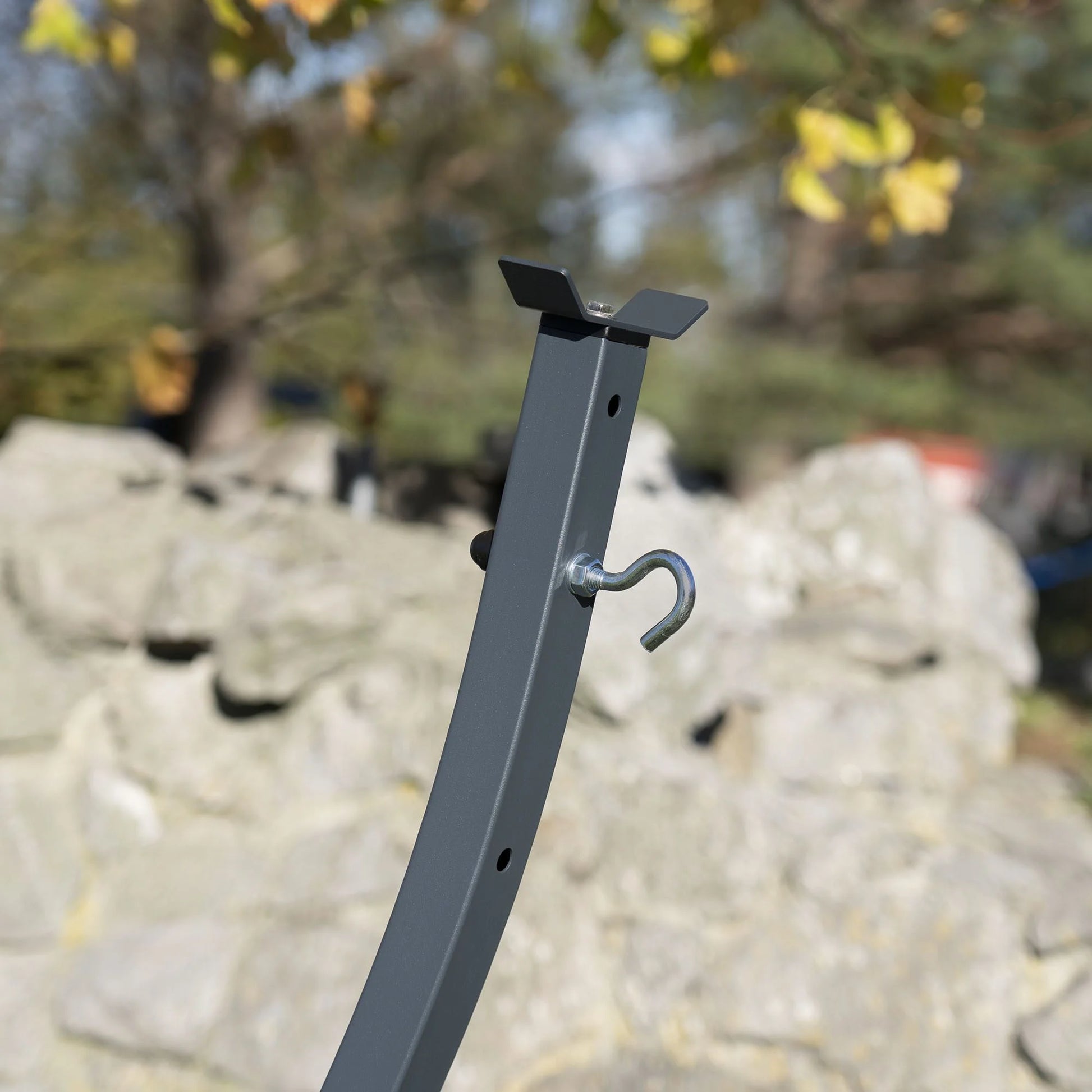 Plus besoin de chercher deux arbres. Grâce à son support en acier thermolaqué compact et robuste, le hamac reste parfaitement stable, même en extérieur, et peut supporter jusqu’à 200 kg.