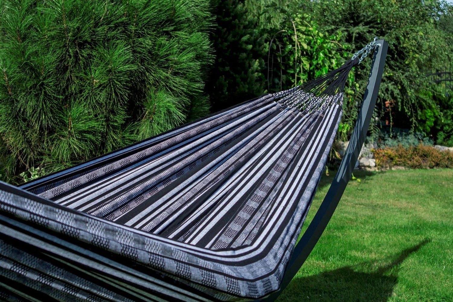 Plus besoin de chercher deux arbres. Grâce à son support en acier thermolaqué, le hamac est ultra stable, même pour deux personnes (jusqu’à 220kg).