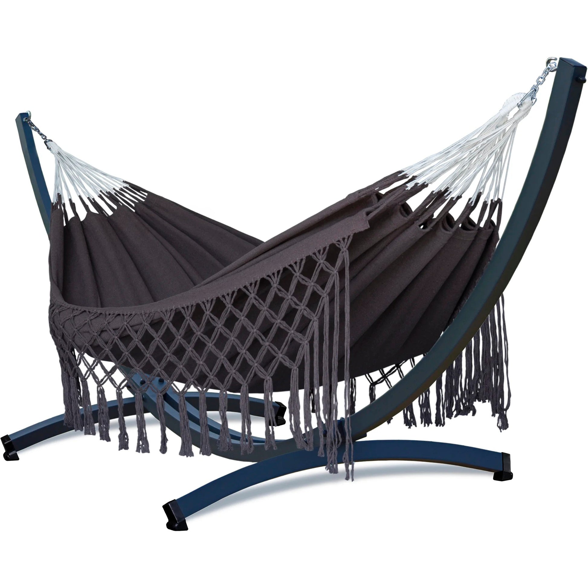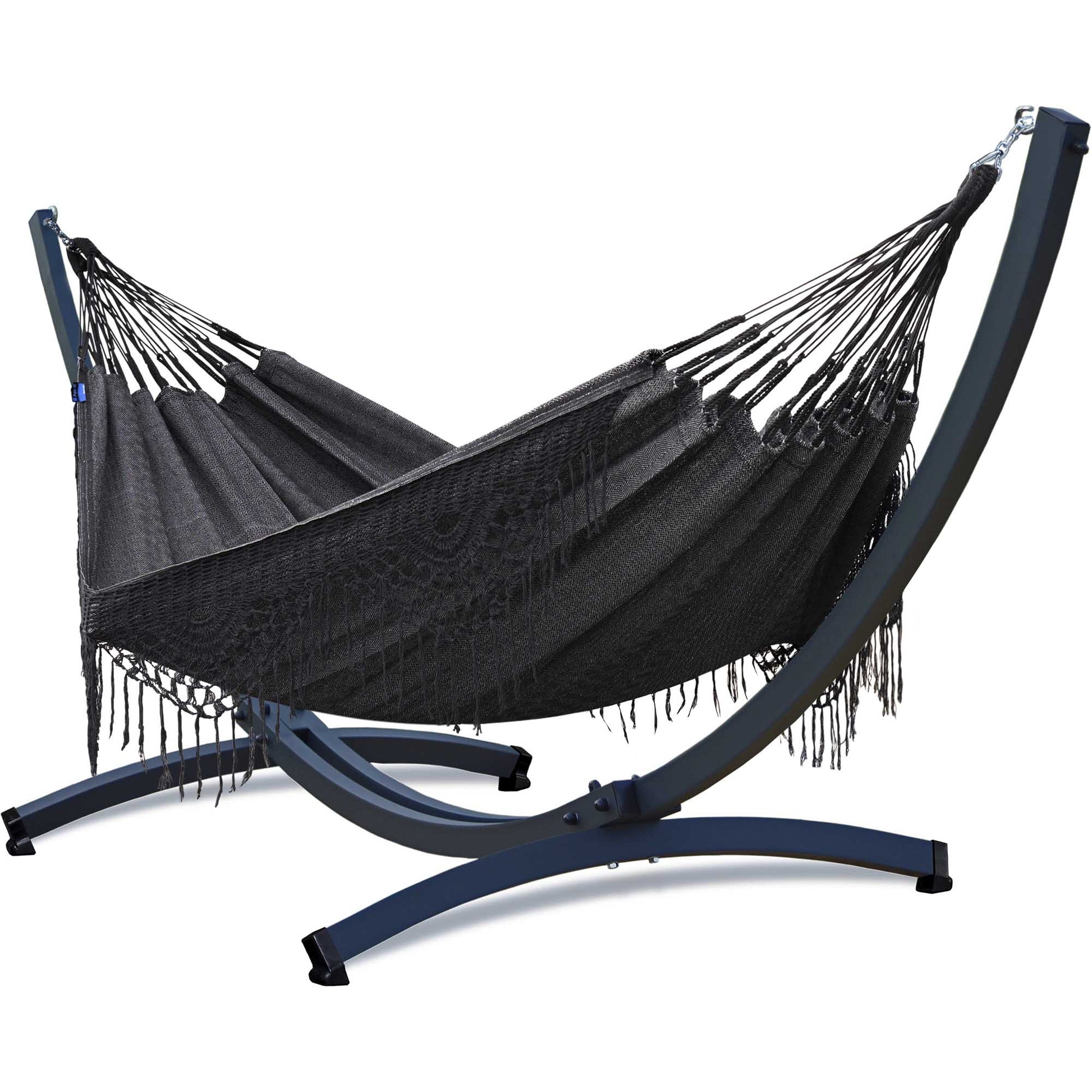 Plus besoin de chercher deux arbres. Grâce à son support en acier thermolaqué, le hamac est ultra stable, même pour deux personnes (jusqu’à 350kg).