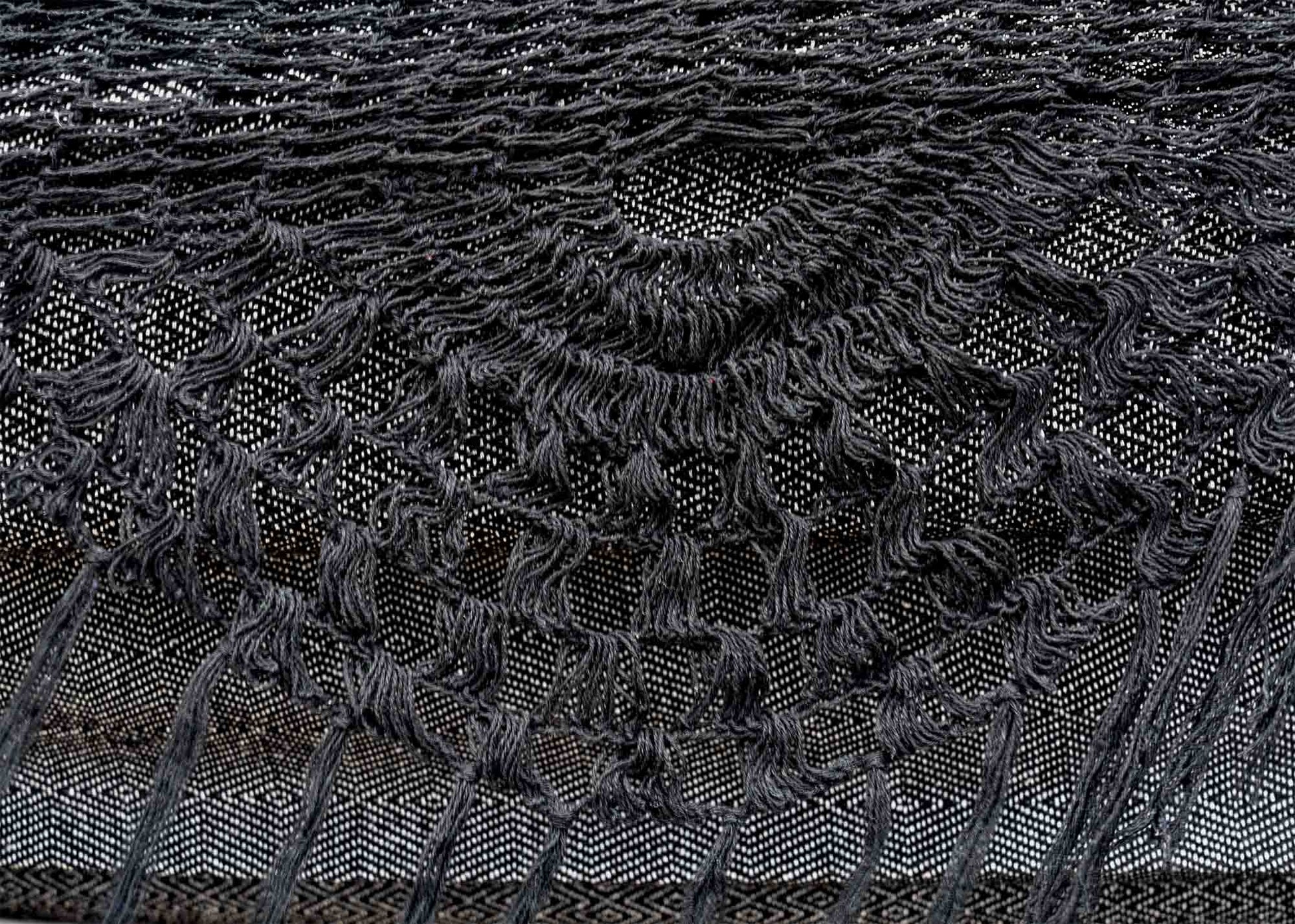 Le Medellín est tissé à la main, avec un design macramé authentique et des franges décoratives noires pour un rendu unique.