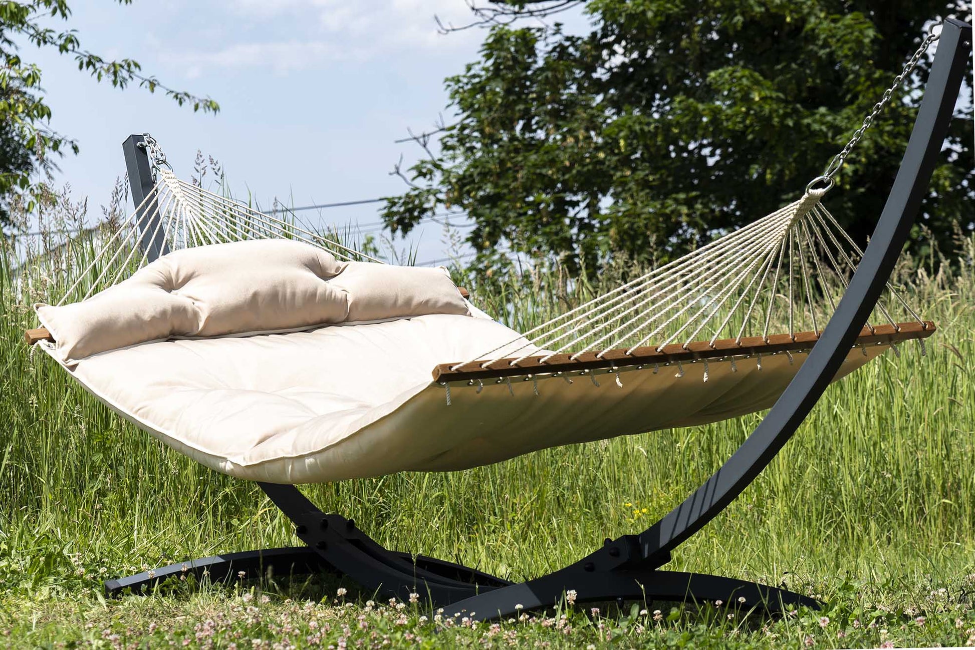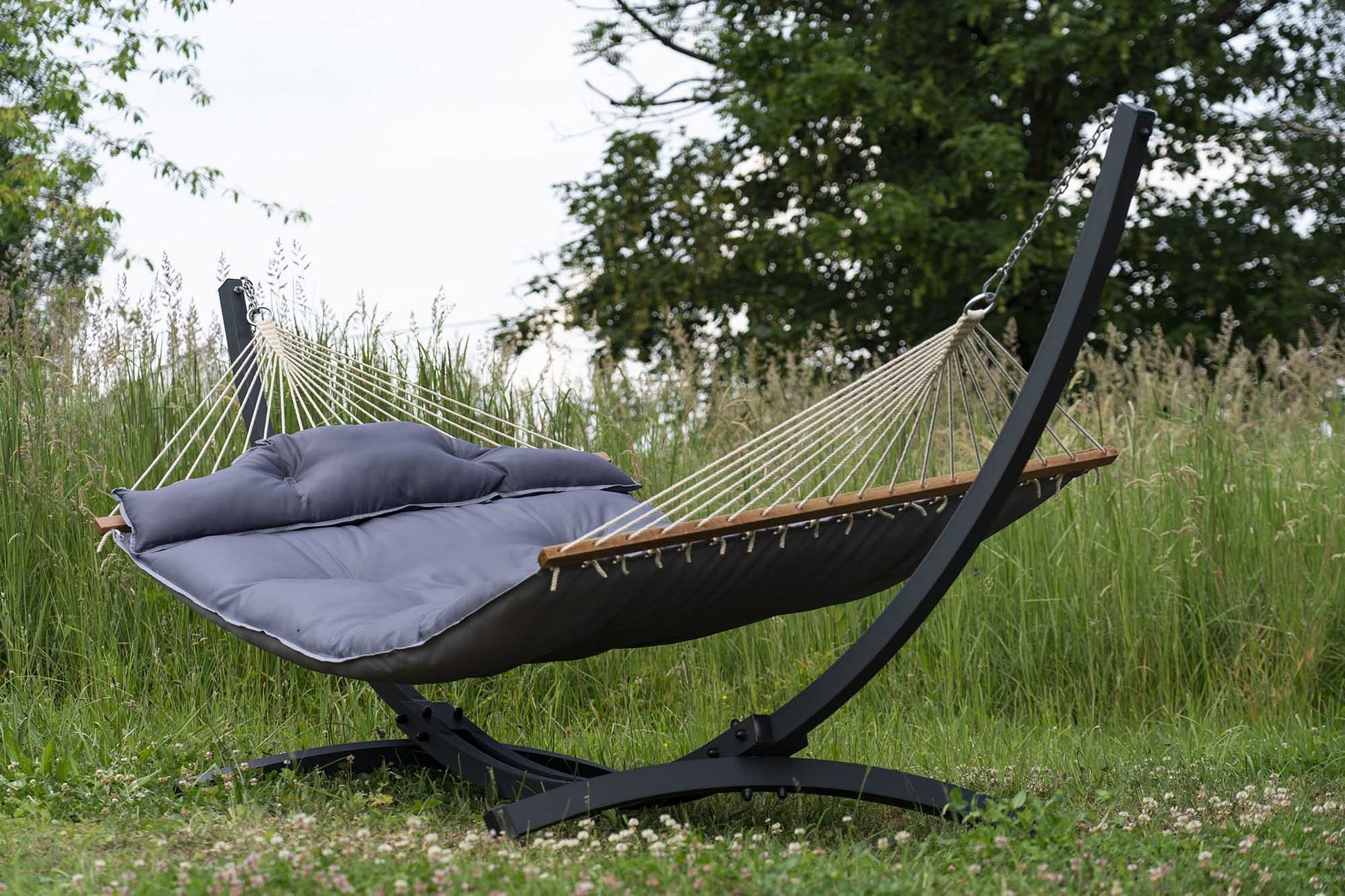 Le hamac Atlanta Duo est entièrement matelassé, avec un généreux coussin intégré