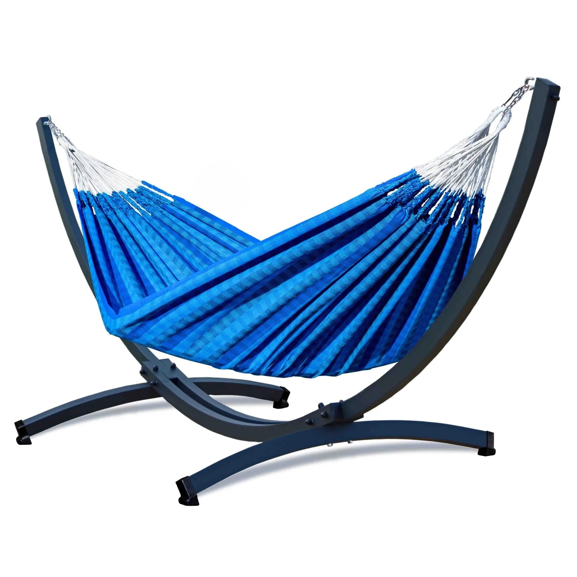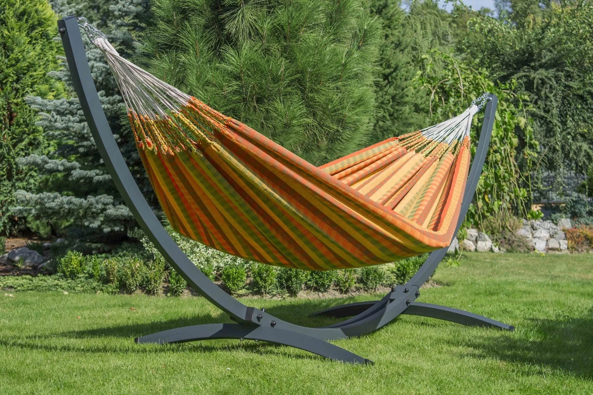 Plus besoin de chercher deux arbres. Grâce à son support en acier thermolaqué, le hamac est ultra stable, même pour deux personnes (jusqu’à 220kg).